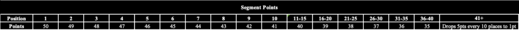 Points will be awarded for SPRINT segments in play, using fastest time through the segment for riders who are designated as a Team SPRINTER, no other rider roles will win points for the segment type but they can help.